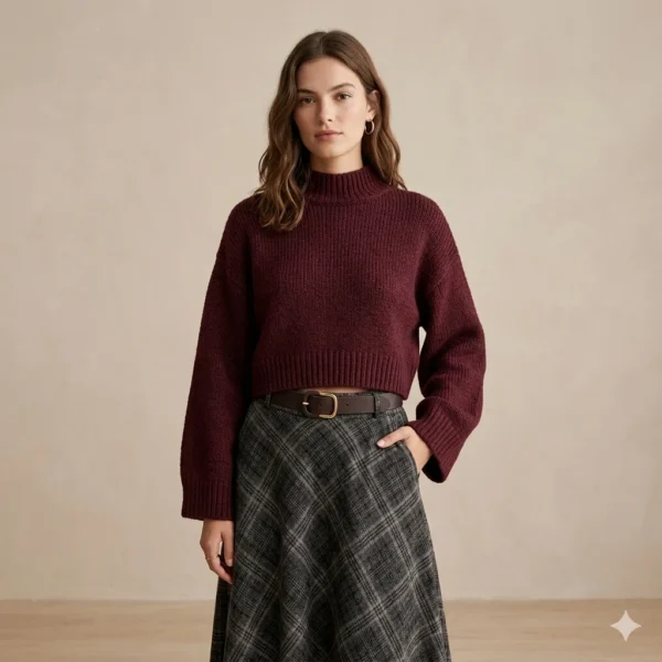اختر الخياراتالوصف: إطلالة تجمع بين الدفء والأناقة في قطعة واحدة. كنزة بتصميم ناعم وياقة عالية تعطي إحساس مريح وفخم، مع تنورة بقصة أنثوية واسعة تضيف حركة جذابة ولمسة راقية لكل خطوة.
